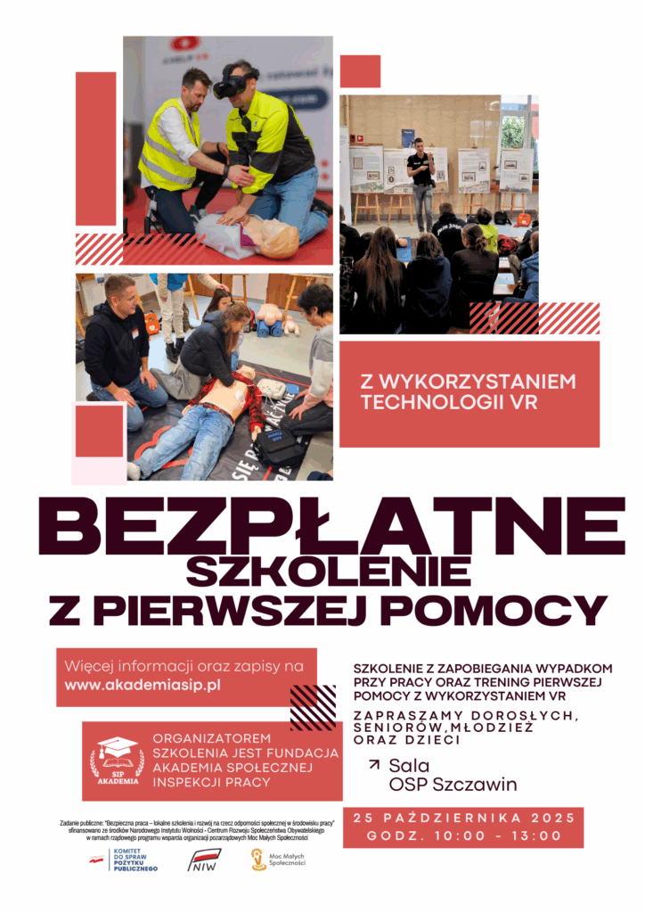 W ramach zadania Fundacja Akademia SIP organizuje szkolenia z zakresu przeciwdziałania wypadkom przy pracy, ograniczania skutków wypadków i awarii oraz wzmacniania odporności społecznej w środowisku pracy. Do udziału w szkoleniach zapraszamy społecznych inspektorów pracy, pracowników służby bhp, pracodawców, przedstawicieli związków zawodowych, pracowników wyznaczonych do udzielania pierwszej pomocy oraz kierowania ewakuacją, przedstawicieli służb, urzędów, instytucji oraz lokalnych liderów.
