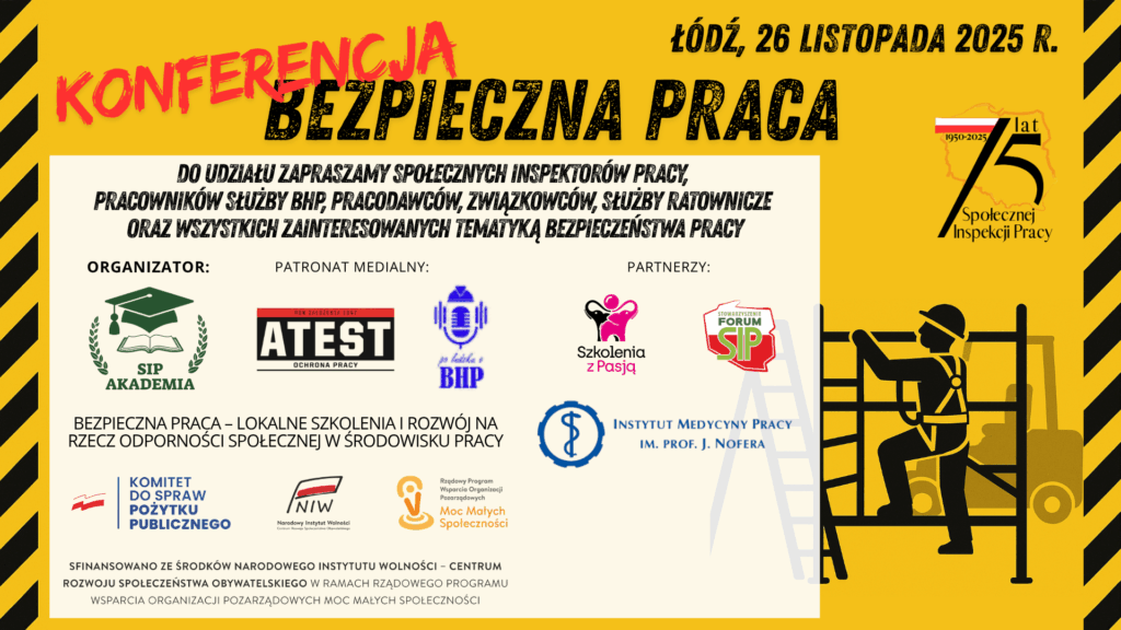 Podsumowaniem działań w ramach programu „Bezpieczna praca – lokalne szkolenia i rozwój na rzecz odporności społecznej w środowisku pracy” będzie konferencja pt. „Bezpieczna praca”, która odbędzie się 26 listopada 2025 r. w Łodzi. Udział w konferencji również będzie bezpłatny. Więcej informacji o konferencji oraz formularz zgłoszeniowy dostępny na: konferencja „Bezpieczna praca”